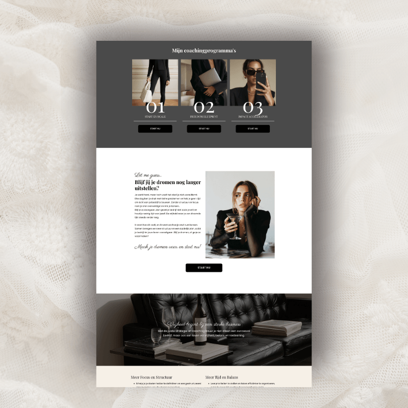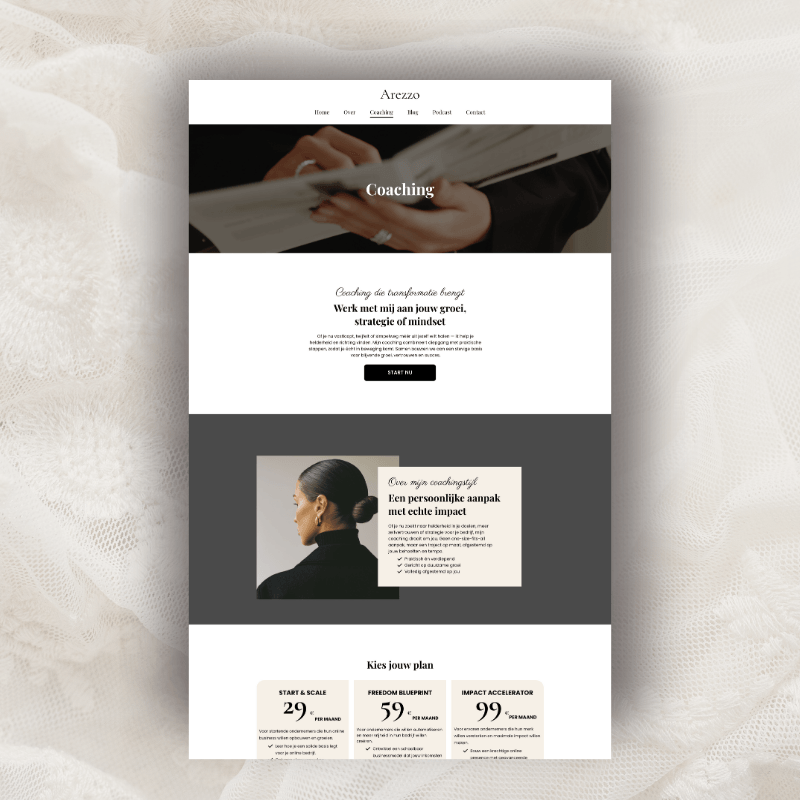 De Arezzo website is speciaal ontworpen voor ondernemers en creatieve dienstverleners die willen opvallen met een moderne, stijlvolle website zonder technisch gedoe. Binnen no-time heb je een complete website die niet alleen prachtig oogt, maar ook strategisch is opgebouwd voor resultaat.